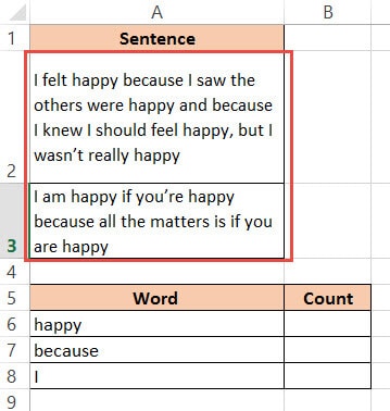 Finally, let's count how many times a specific word occurs in a cell or range of cells.